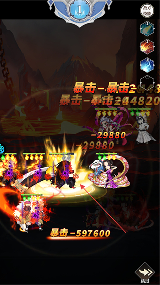 1、操控角色攻击敌方,触发暴击造成高额伤害,推进战斗进程。
