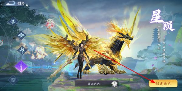 1、玩家在创角界面选择职业形象,确定角色名称后点击创建角色按钮,完成角色创建进入游戏。