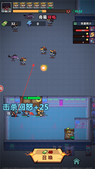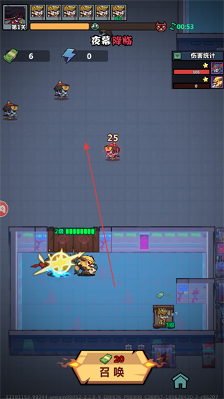3、点击召唤部署角色,攻击敌人,击败敌人获得25数值奖励。