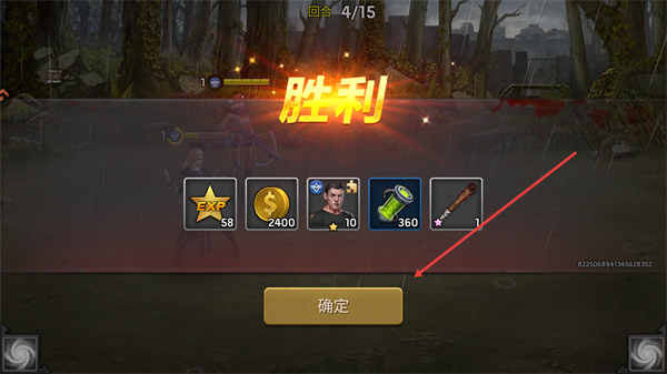 4、战斗胜利后获得EXP、金币等奖励,点击确定领取奖励并推进关卡。