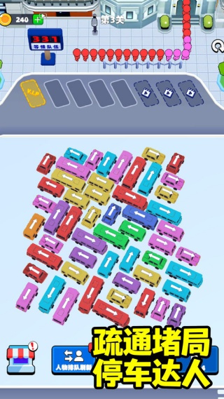 首次观察关卡布局时标记车辆移动方向箭头,在脑海中提前模拟每一步的移动效果,避免盲目点击浪费闯关步数。