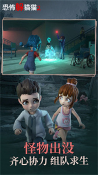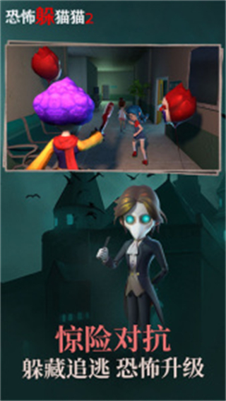 《恐怖躲猫猫2》是一款非对称对抗类的竞技游戏,延续了初代《恐怖躲猫猫》的经典躲与藏的玩法,融入了全新的具有更强互动性与趣味性的对抗玩法。游戏中玩家有两个角色可以选择,分别是躲藏者和抓捕者,抓捕者的任务就是抓住所有躲藏者;躲藏者可隐藏到掩蔽物中躲过抓捕者,通过团队合作和秘密行动,互相配合来完成任务,最终打开逃生门逃离。