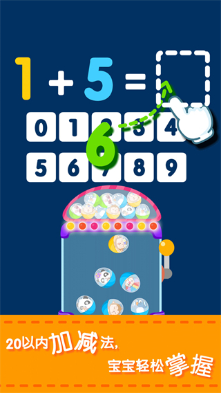 2、趣味游戏化学习模式,融入夹娃娃机、扭蛋机等宝宝喜爱的互动场景,将算数任务与游戏挑战相结合,让宝宝在完成算数后获得即时反馈,主动爱上算数学习。