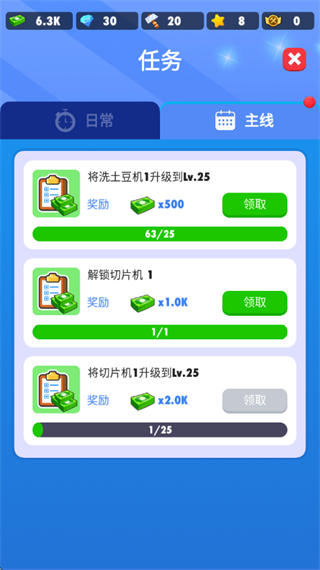 3、重复升级操作,提升机器等级的同时推进任务进度。