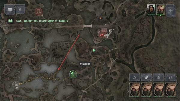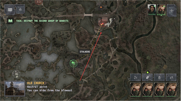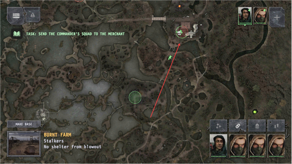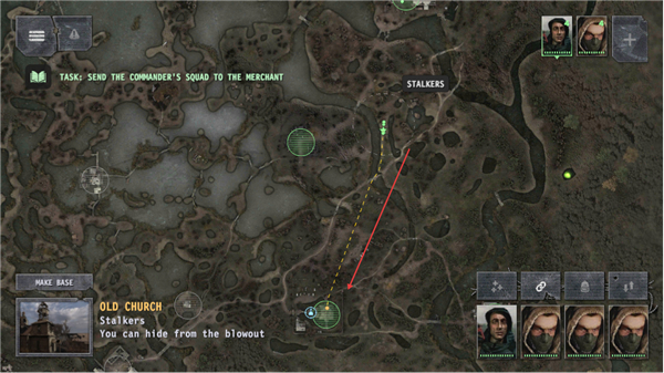 4、沿路径移动编队,前往OLDCHURCH附近的商人据点,推进任务流程。