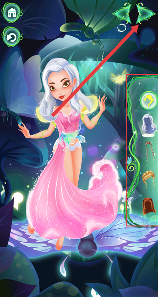 3、通过右侧的装扮栏,选择对应的装饰元素,为精灵公主搭配造型后点击右上角按钮进行保存。