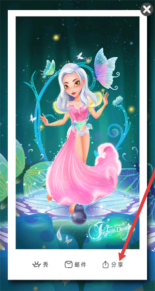 4、在保存完成后,可点击界面中的“分享”等按钮,展示或分享精灵公主的装扮效果。