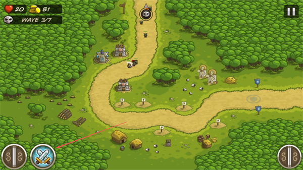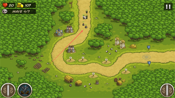 2、经典塔防体系与英雄玩法深度融合,保留兵营、弓箭塔、炮台、魔法师塔四大核心防御塔及其进阶转职体系,在此基础上新增英雄协同作战机制。