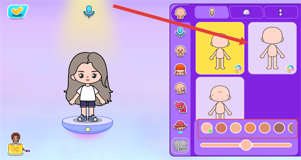 4、在自定义界面中,可选择角色的体型、肤色等外观,选择好后点击左上角按钮完成角色创建。