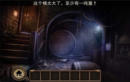 来到井口将水桶放在钩子上放下去(可放可不放,不影响通关),然后回到二楼浴室,用锤子砸开地板。接着进入里面的空间,点击桌子右上方的小格子并在信封里获得钥匙,再接着用钥匙打开左边的抽屉获得手电筒,然后到酒窖用水龙头放空酒桶里的酒并向右移动酒桶,出现地道后使用手电筒来到教堂,在教堂正中的福音书里有一把钥匙,最后用钥匙打开教堂的门,手游结束。