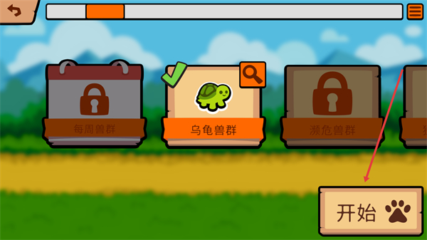 1、进入游戏后,选择已解锁的兽群,点击界面右下角的开始按钮,即可进入对局。