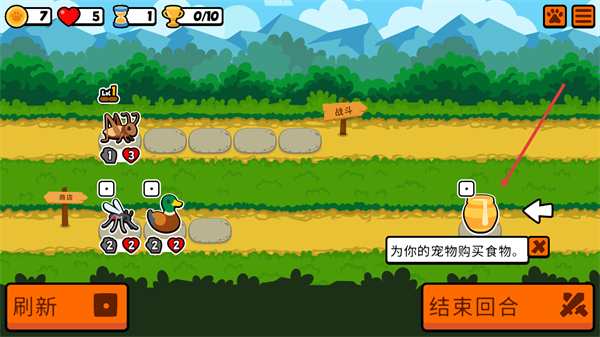 3、商店旁的食物可花费金币购买,使用后能为随从增加属性或附加特殊效果,提升随从在对战中的战力表现。