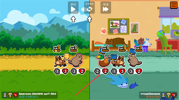 4、完成随从购买、阵容调整后,系统会自动匹配对手进行阵容对战;对战结果会影响爱心数量。