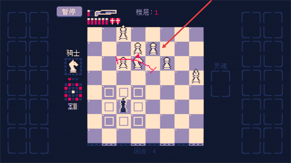 2、黑棋国王需在象棋棋盘内移动,白棋会遵循国际象棋规则行动,通过移动调整位置后,用霰弹枪射击敌方棋子,推进战局。