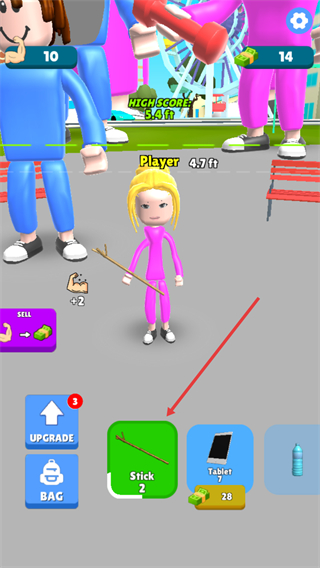 1、选择Stick道具提升角色属性,增加举重能力,推进角色成长进度。