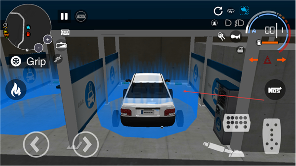 2、跟随道路指引向车库区域前进,控制油门和转向,适配弯道地形。