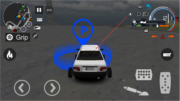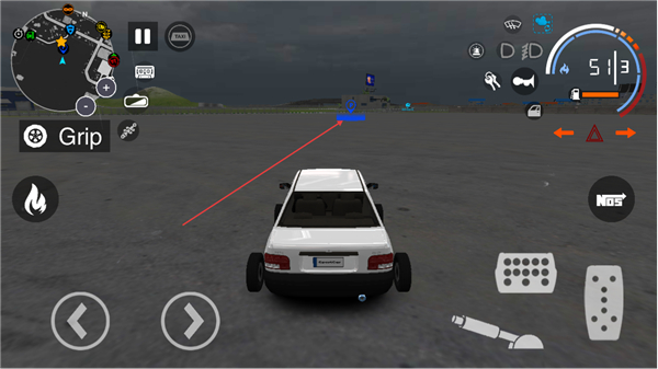 1、根据地图指引操控车辆,沿目标方向行驶,调整方向键控制车身转向。