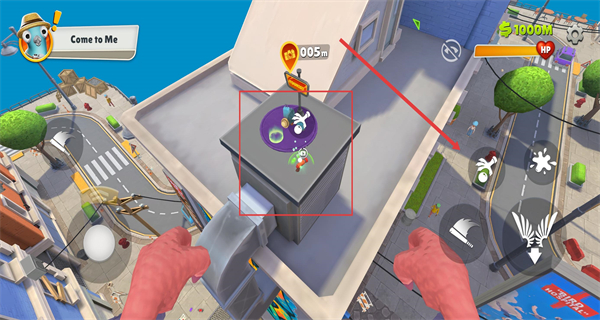 4、在飞行到高空后,定位目标道具,点击对应按钮完成道具拾取。