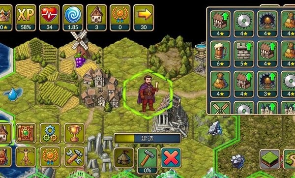 推荐玩法:优先建造招募建筑,提升领导力,靠军队数量和质量取胜。