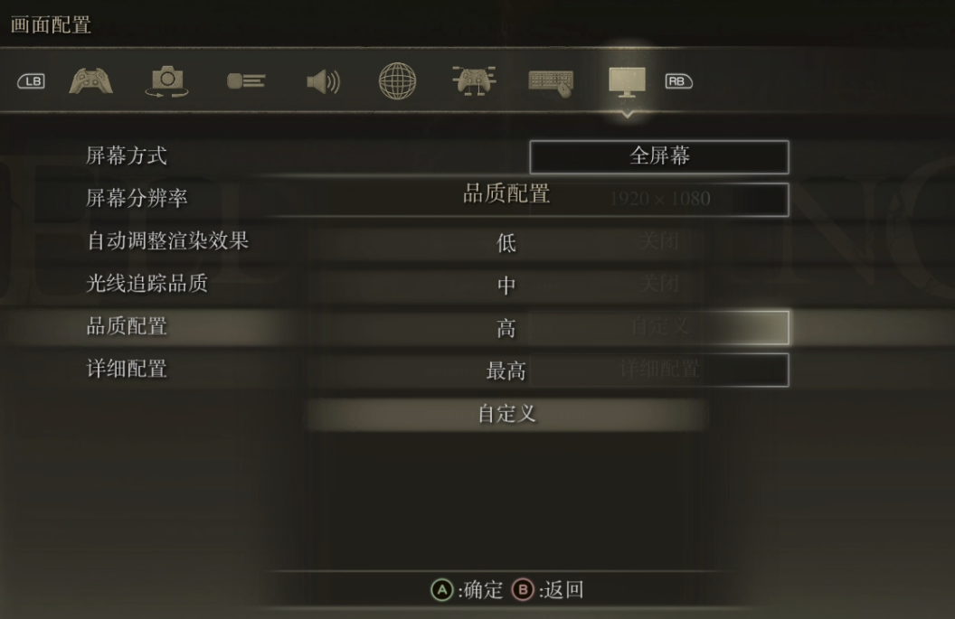 请前往首页画面或是从游戏内菜单确认配置:[系统配置]>[画面配置]>[光线追踪品质]。