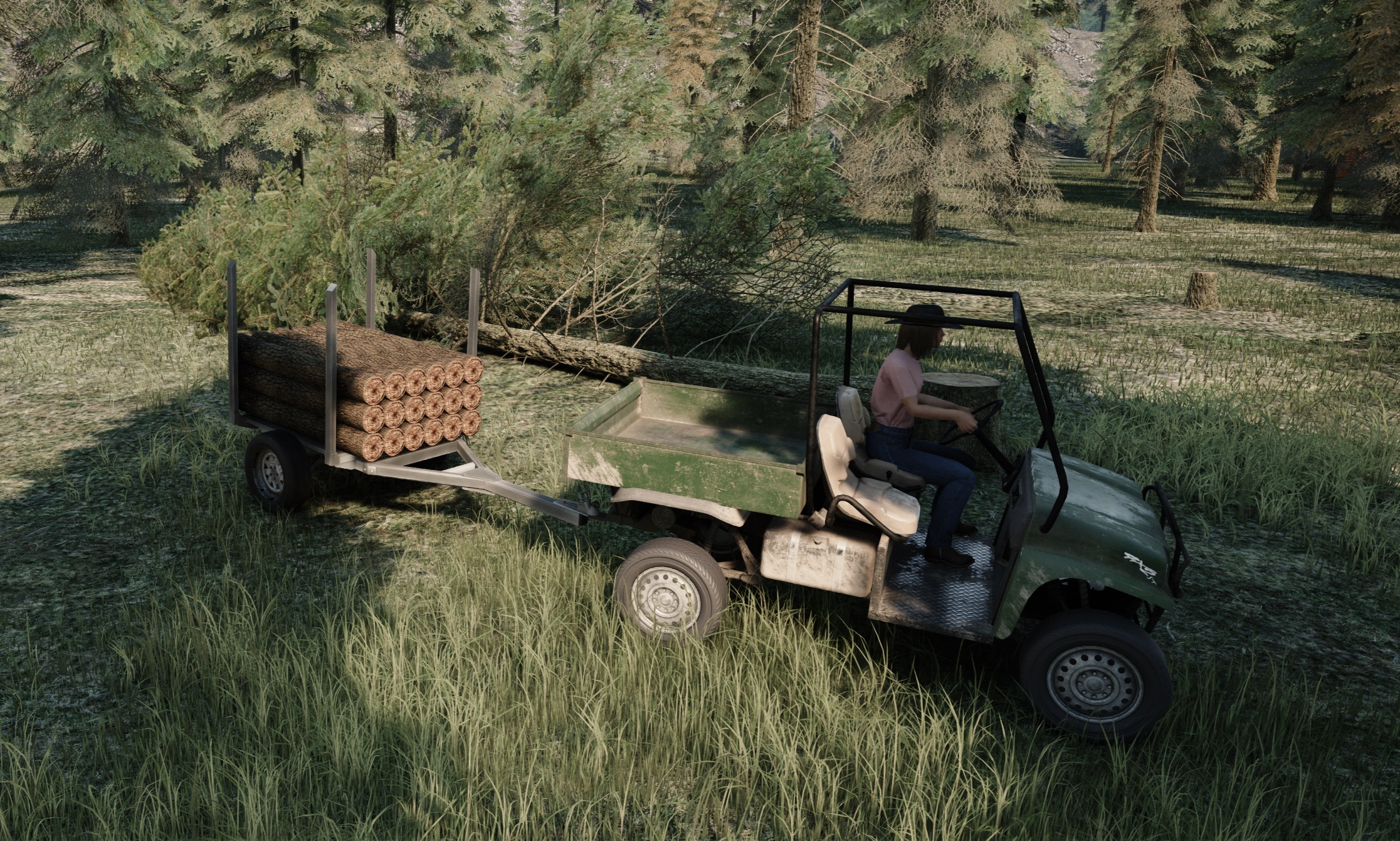 五金店现在有售一种新拖车!原木拖车一次可容纳36根原木。原木现在每根售价2美元。好用!