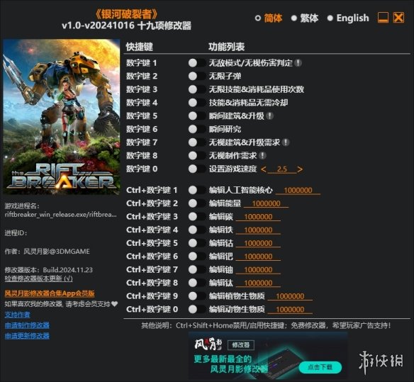 >>>《银河破裂者》v1.0-v20241016十九项修改器风灵月影版