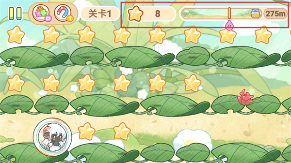 3、继续收集场景中的【星星】类道具提升分数,推进游戏进度。