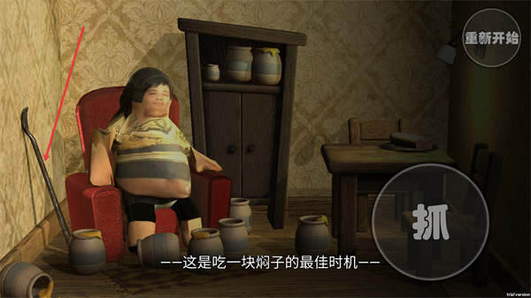 2、关卡中出现提示时,点击右侧【抓】按钮,操控角色抓取焖子。