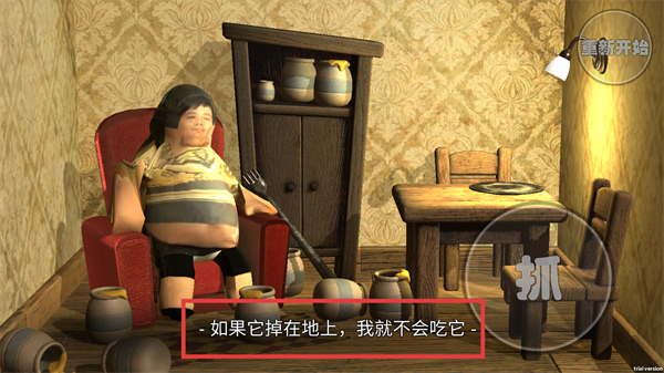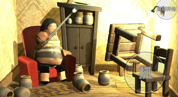3、角色会用工具抓取桌上的焖子,需在合适时机点击【抓】,确保成功获取目标物品。