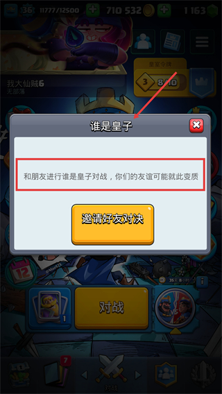 4、邀请好友进行【谁是皇子?】对战,体验趣味玩法的同时,注意该模式可能影响双方友谊哦。