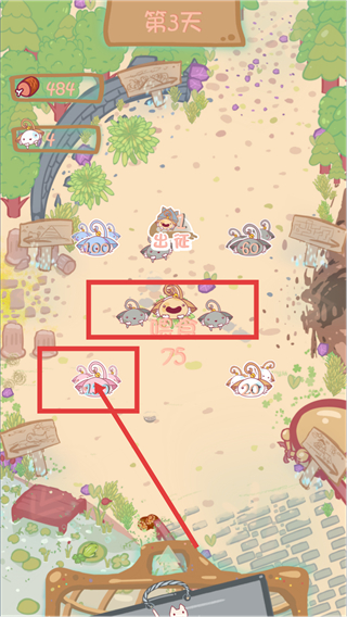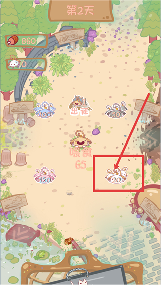 1、在【第2天】界面找到标红的【20】宠物图标哦,点击它就能把这只宠物添加到队列里啦,快把它收入囊中吧。