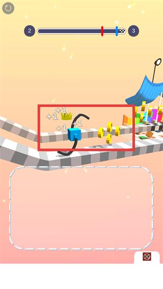 2、通过路段时拾取【+1】类增益道具,积累优势的同时,持续向【3】的终点方向移动。