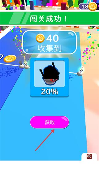 3、闯关成功后,点击【获取】按钮领取【40】金币与腿部解锁进度【20%】,积累资源用于后续提升。