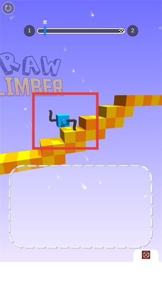 1、观察【红框内的蓝色方块角色】,借助之前绘制的腿,沿阶梯地形向上移动,推进关卡进程。
