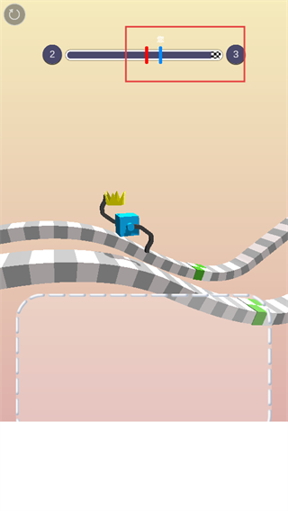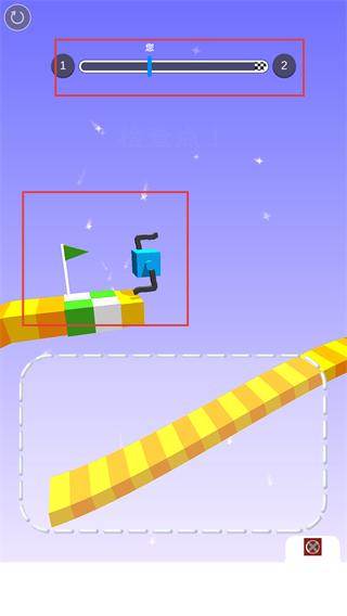 2、关注【红框内的进度条】,操控角色靠近终点旗帜,同时借助绘制的腿完成地形跨越。