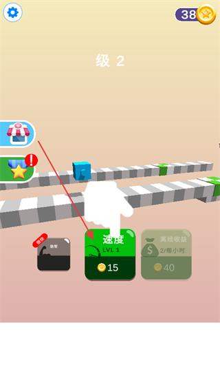 1、在游戏准备界面,可升级“速度”等属性,提升方块的移动效率,为关卡挑战奠定基础。