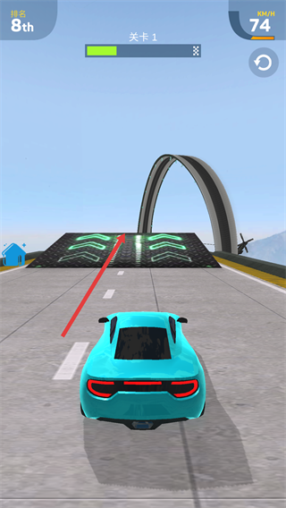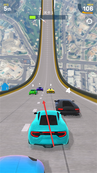2、比赛过程中,可观察排名、车速等信息,通过操控车辆超越其他赛车,提升自身排名,推进关卡进度。
