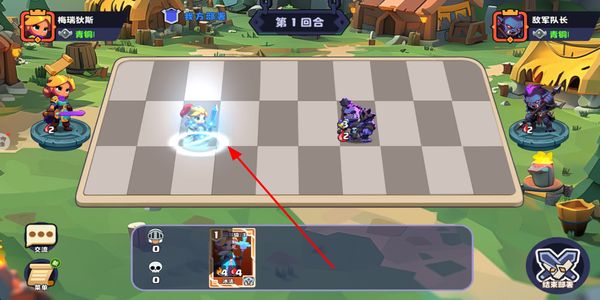 2、在对战界面将己方角色卡牌部署到棋盘空位,完成部署后可结束部署进入回合战斗。