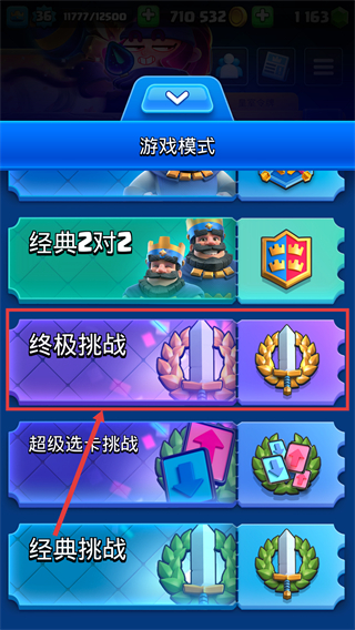 1、在游戏模式界面选择【终极挑战】,该模式有独特玩法,能让你体验高难度对战且获取丰厚奖励。