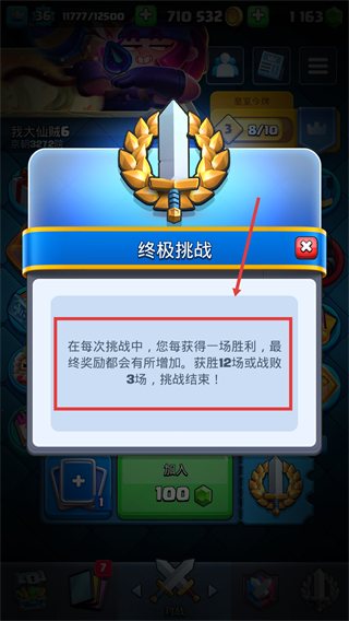 3、终极挑战中每胜利一场奖励会增加,需赢12场或败3场结束,合理规划对战策略很重要。