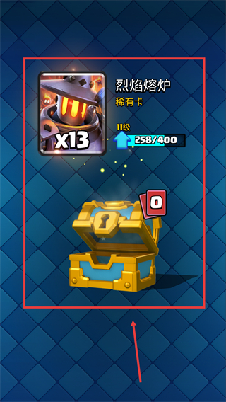 2、打开宝箱得【烈焰熔炉-稀有卡-X13】,积累后可升至【11级】,增强对战防御能力。