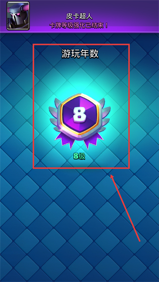 3、完成【皮卡超人】卡牌强化,解锁【游玩年数-8级】徽章,是长期游玩的荣誉证明。