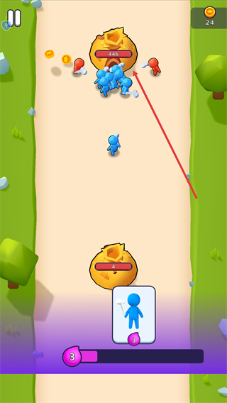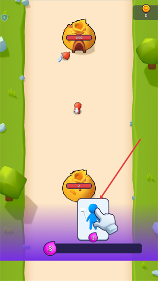 4、召唤的村民单位会自动攻击敌方目标,击败目标可获得金币奖励,可继续召唤单位增强战力。