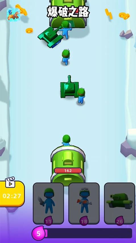- 爆破之路是一款融合多类玩法元素的策略对战游戏,通过合理布置士兵与战车展开激烈对战