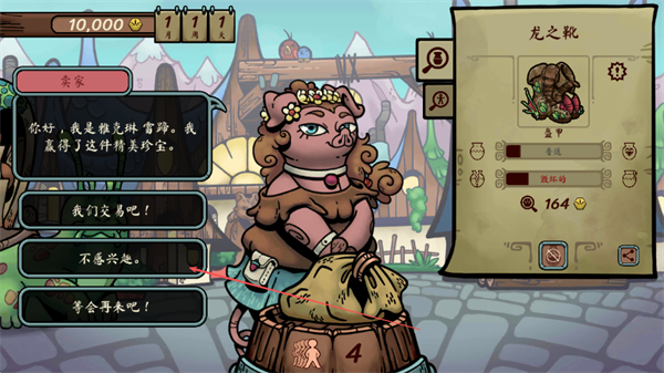 2、与当铺NPC如猪克琳交互,选择不感兴趣,会有下一位NPC前来交易。