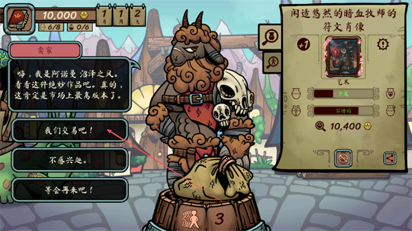 4、和后续NPC如阿曼达交易,消耗货币如10400换取稀有道具符文肖像,积累物品资源。