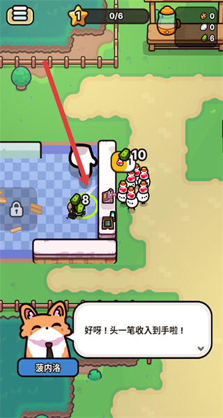 3、操控角色移动到收银台位置,完成饮品的结算操作,获取对应收益。