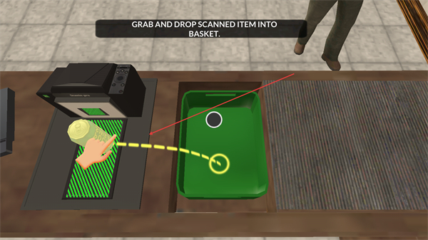 2、按提示点击商品,将顾客所需物品取至柜台,准备后续操作。
