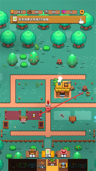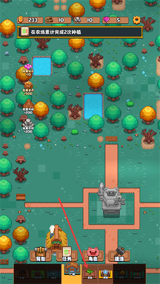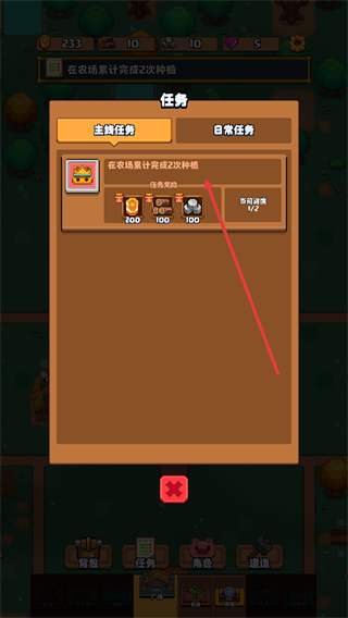 1、查看主线任务是在农场累计完成2次种植,准备收集所需道具如种子。