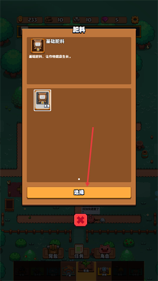3、打开肥料界面,选择基础肥料,点击选择确认使用。